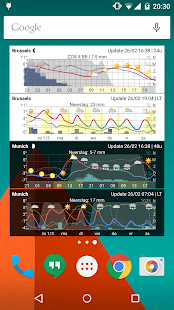 Meteogram widget is a weather application that shows the weather in a very detailed way at a glance on your home screen. While a lot of weather applications are showing the weather forecast in a fairly basic way, this application does so by visualizing the forecast in a so-called meteogram.